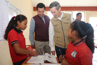 Tras la entrega de beneficios, las autoridades visitaron la primaria comunitaria rural “Manuel Avila Camacho” en el Poblado Isla Mano de León, en donde padres de familia y maestros también agradecieron apoyos otorgados a la institución, que se aplicarán en la construcción de la barda perimetral y mejoras a los salones de clases.