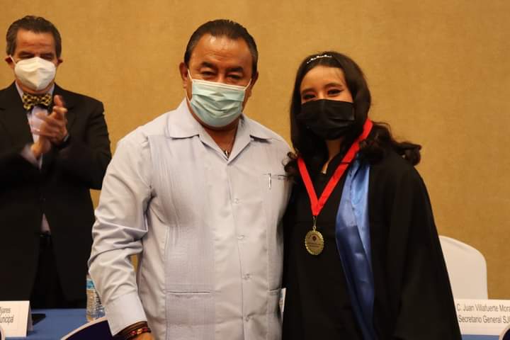 Entre estos reconocimientos, se otorgó la medalla al mérito académico, la cual la recibió la estudiante Sheila Joana Nava Díaz y fue colocada por el Secretario General del SJOIIM Juan Villafuerte Morales.